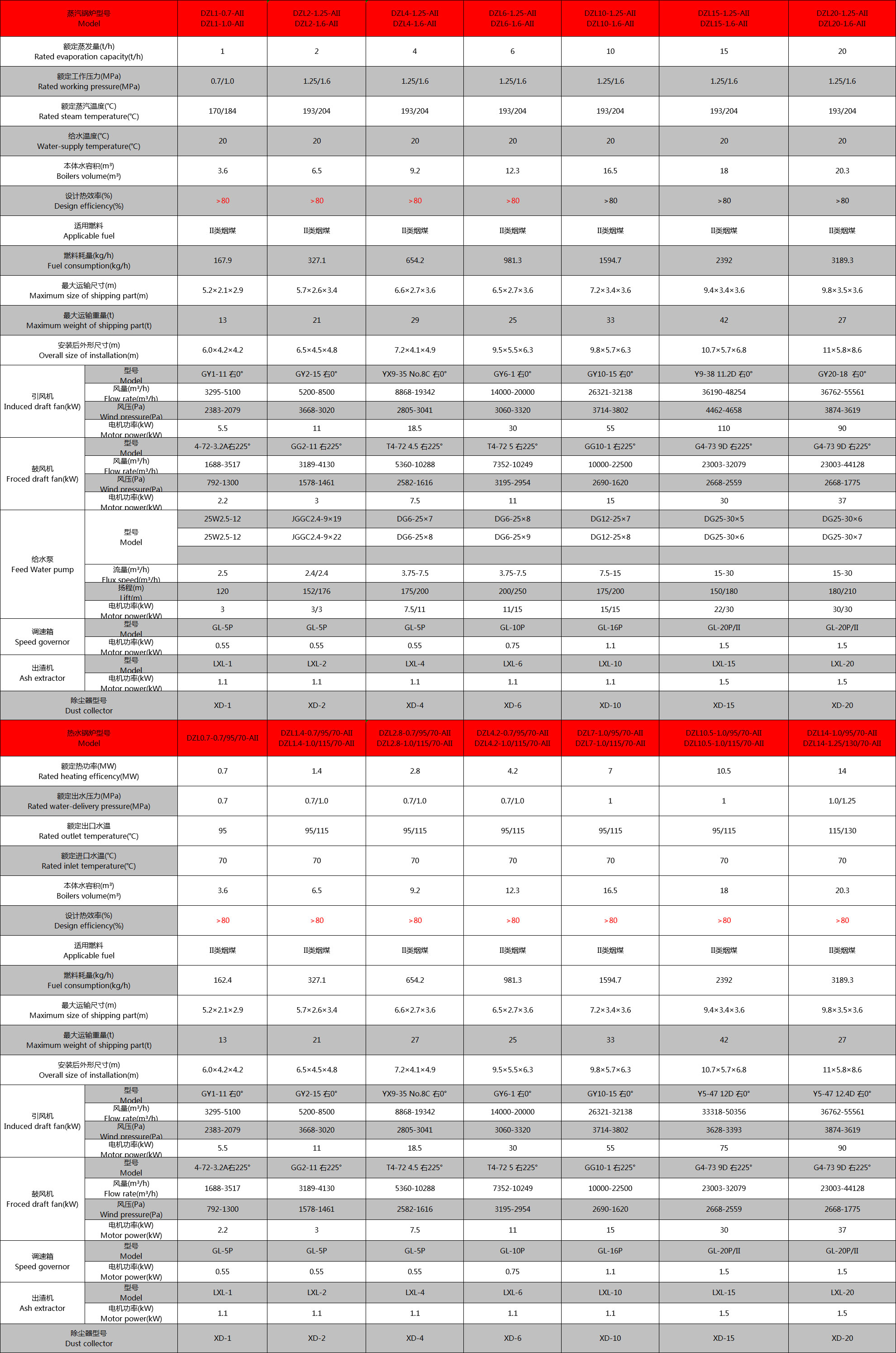 額定蒸發量:1-20t/h,供熱量0.7-14MW